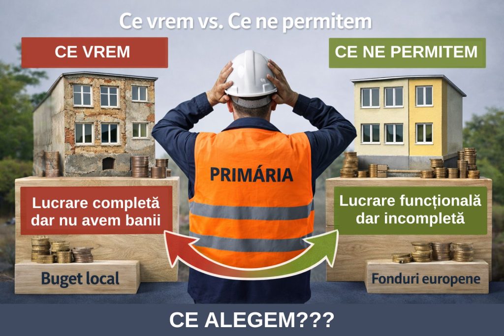 Când vezi o lucrare începută sau un proiect anunțat, logica de acasă spune așa: dacă tot ne-am apucat, hai să facem tot. În fondurile europene, logica este complet diferită. Acolo nu contează ce ar fi normal sau frumos, ci ce este permis de finanțare.